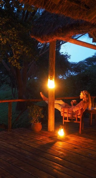 Dagens eventyr begynder tidligt om morgenen. Fra bilen kan I se solen stå op over savannen og opleve de morgenfriske dyr. Efter nogle timer på savannen vender I tilbage til campen for at spise morgenmad. Om formiddagen kan I besøge en masai-landsby, tage på en guidet bush walk eller slappe af ved campområdet, inden I tager afsted på jeres eftermiddagssafari.