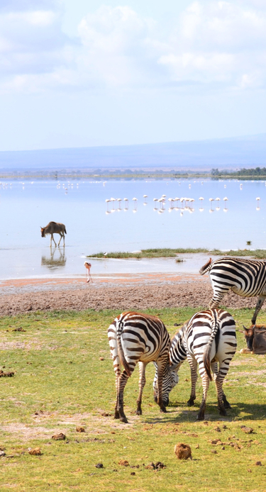 Dette er en dag i safariens tegn! Amboseli Nationalpark er kendt for sine store elefantflokke og ikoniske afrikanske dyr som giraffer, zebraer, hyæner og flodheste. Midt i parken ligger en sø med et rigt fugleliv, som ofte besøges af zebraer og gnuer, der køler sig ned i vandet.