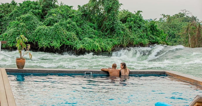 Wildwaters Lodge ligger på Kalegala Island, en privat ø på Nilen. Det er et unikt overnatningssted, som kun kan nås med båd. I Jinja kan I deltage i flod-trekking eller bungee-jump, eller måske vælge noget mindre nervepirrende som ridning, kajakroning eller fiskeri. Forholdene for lodgens fuglekiggere er gode, og livsnydere kan slappe af i lodgens spa til lyden af den brusende Nil.
