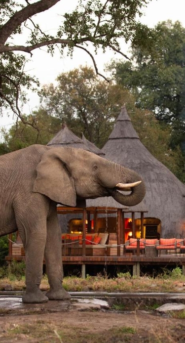 Eftermiddagssafarien afsluttes normalt med en drink i solnedgangen. Middagen serveres på lodgen, og aftenen afsluttes omkring bålet.