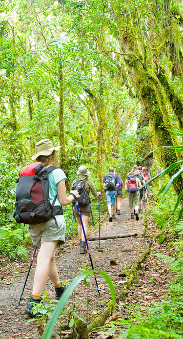Efter morgenmaden tager I til Machame Gate, hvor vandringen mod toppen af Kilimanjaro begynder. I går gennem skovlandskab og regnskov i behageligt sommertøj. Er I heldige, kan I se aber i træerne. I takt med, at I kommer højere op på bjerget, falder temperaturen.