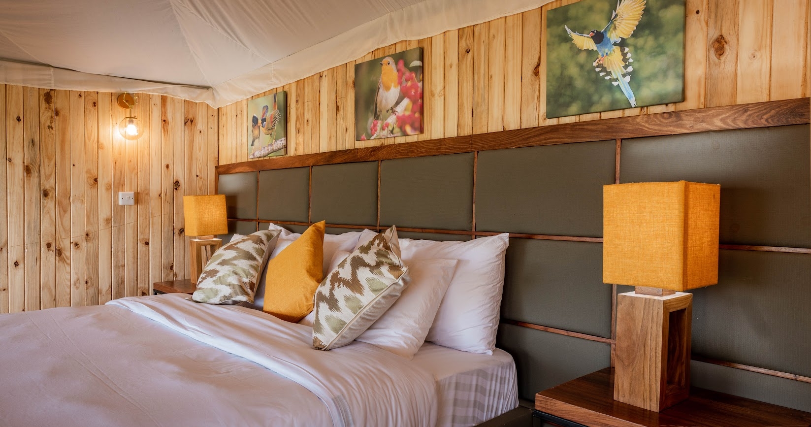 Alle teltene har en terrasse, soveværelse og eget badeværelse med bruser og toilet. Her kan du nyde naturens ro og nærheden til parkens rige dyreliv.