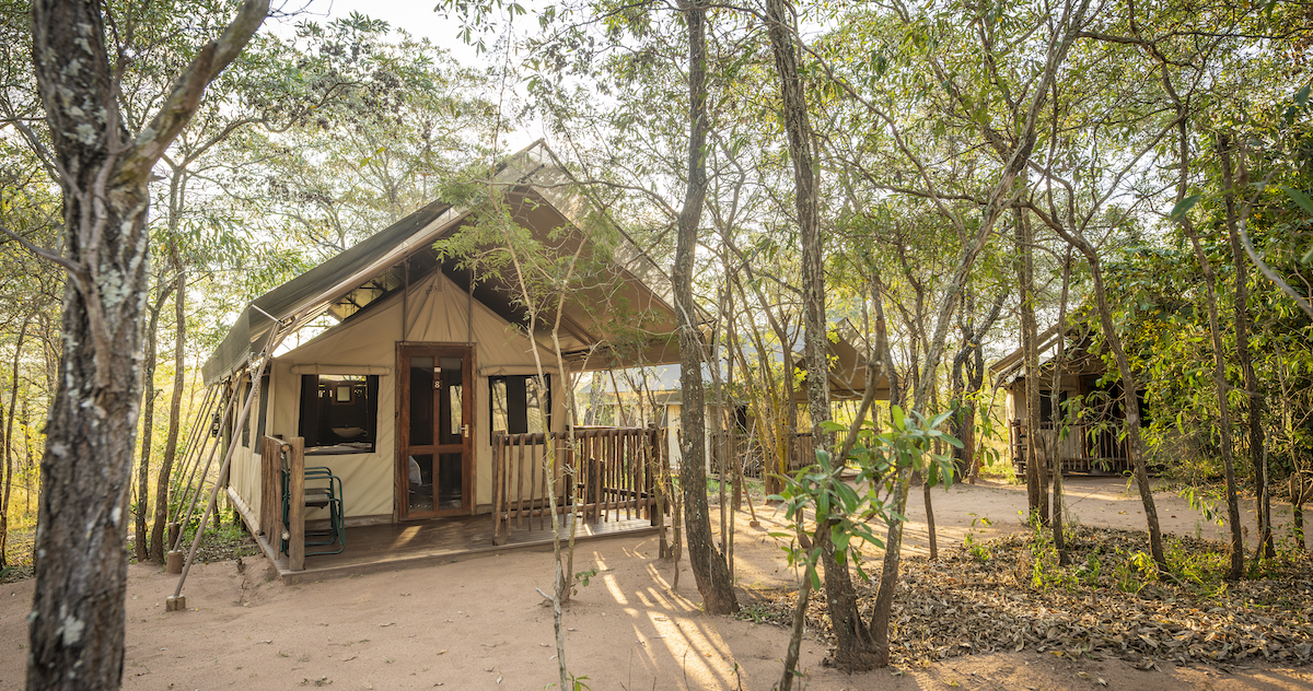 Lodgen bliver ofte omtalt som "Porten til Kafue National Park" og ligger ved bredden af den glitrende Kafue-flod. Her bor man tæt på det lokale dyreliv, herunder impalaer, bavianer, aber, elefanter, flodheste, leoparder, sjakaler og endda en lille løve; og selvfølgelig vores faste beboer, den vilde kat Mauw! Lodgen passer nahtløst ind i den omkringliggende vildmark og er designet med naturen for øje. Stråtag holder interiøret køligt, og træterrasser har udsigt over floden. Efter en game drive eller fisketur kan du køle dig ned i evighedsbassinet, mens flodhestene plasker i floden nedenfor.