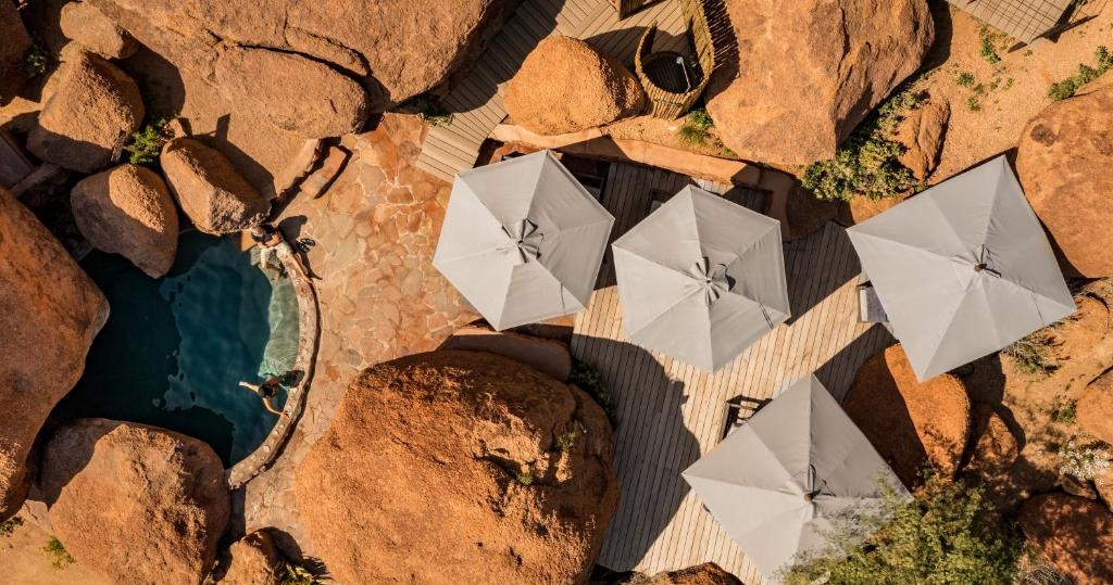 Lodgen tilbyder tolv eksklusive suiter bygget i sten og glas. Hver suite har et udtrækbart tagvindue til at se stjernerne fra sengen og en privat veranda med pool. Her kan du nyde en stjerneklar himmel, enestående udsigt og en overvældende ro i et af Afrikas mest fascinerende landskaber.