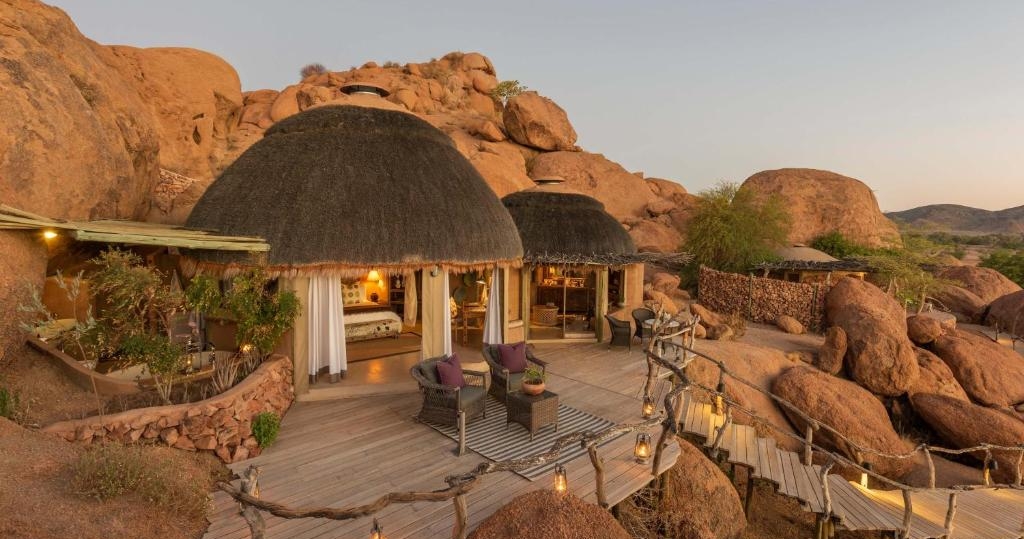 Camp Kipwe ligger inde i klipperne i Aba Huab-dalen, hvilket giver dig en naturnær oplevelse med enestående udsigt. Lodgen er designet til at blende ind i omgivelserne, med en pool, der er hugget ud af klipperne, og bungalower i farver, der matcher omgivelserne. Camp Kipwe tilbyder eksklusiv og højkvalitets service. Et perfekt valg for dig, der søger et luksuriøst, men samtidig miljøvenligt ophold i et af Afrikas mest spektakulære landskaber.