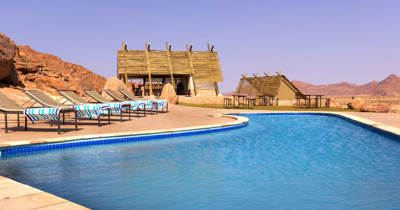 Camp Kipwe ligger inde i klipperne i Aba Huab-dalen, hvilket giver dig en naturnær oplevelse med enestående udsigt. Lodgen er designet til at blende ind i omgivelserne, med en pool, der er hugget ud af klipperne, og bungalower i farver, der matcher omgivelserne. Camp Kipwe tilbyder eksklusiv og højkvalitets service. Et perfekt valg for dig, der søger et luksuriøst, men samtidig miljøvenligt ophold i et af Afrikas mest spektakulære landskaber.