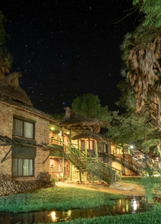Samburu Sopa Lodge ligger i Samburu National Reserve i Nordkenya og tilbyder en unik oplevelse med panoramisk udsigt over det omkringliggende landskab. Denne safarilodge, bygget til at afspejle det lokale samfunds arkitektoniske arv, indeholder 15 hytter med i alt 60 værelser.