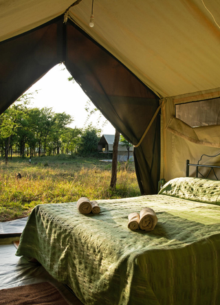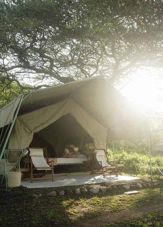 Denne lille camp har ti eksklusive safaritelte, der er designet til at give gæsterne den optimale glamping-oplevelse. Alle telte er udstyret med badeværelser og private verandaer med udsigt over savannen. Her får du god mad og service midt i vildmarken!