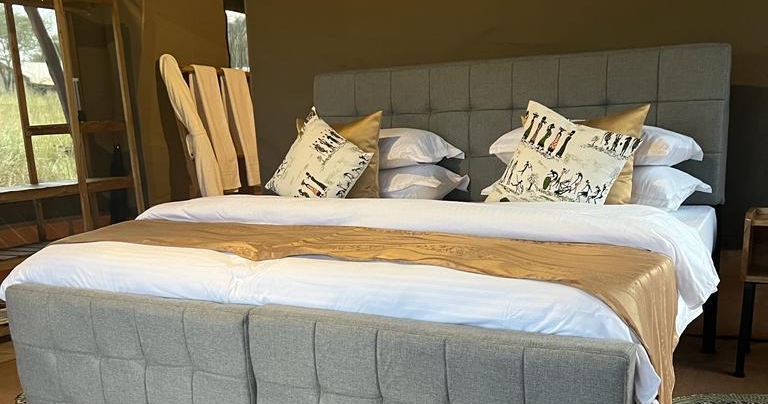 De store, rummelige og elegante telte er bygget på træplatforme. Ud over komfortable senge og badeværelser er der også udendørs bruser. Alle telte har en stor og rummelig veranda, hvor du kan se ud over Serengetis uendelige sletter.