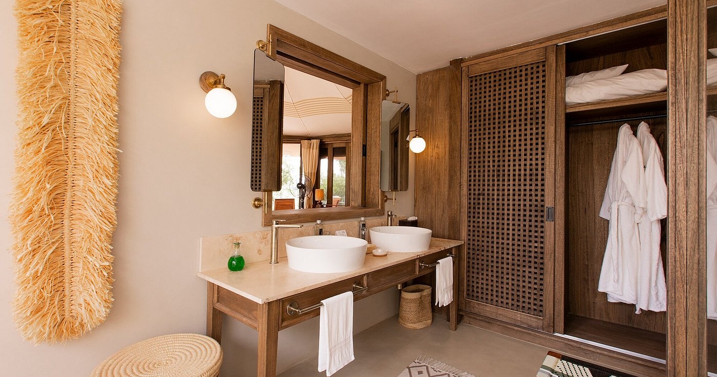 Overnatningsstedet består af teltsuiter, dekoreret med antikviteter og lokalt håndværk, hvor hver suite har komfortable senge, fuldt udstyrede badeværelser og store private terrasser, der tilbyder fantastisk udsigt.