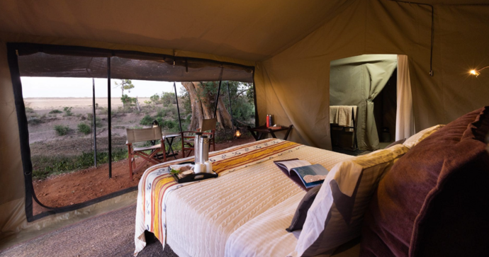 Overnatningsstedet består af teltsuiter, dekoreret med antikviteter og lokalt håndværk, hvor hver suite har komfortable senge, fuldt udstyrede badeværelser og store private terrasser, der tilbyder fantastisk udsigt.