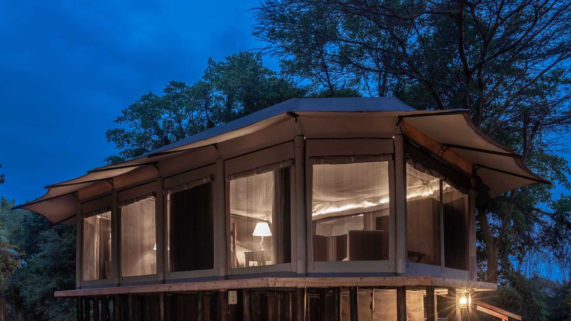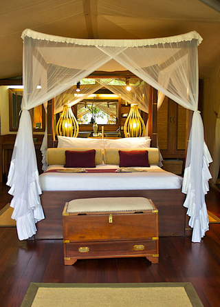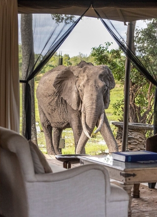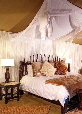 Når du ligger i sengen, kan du trykke på en knap for at åbne taget på teltet. Det eneste, der da skiller dig fra den store afrikanske stjernehimmel, er et usynligt myggenet. Her tilbydes en luksuriøs og naturlig oplevelse af højeste kvalitet.