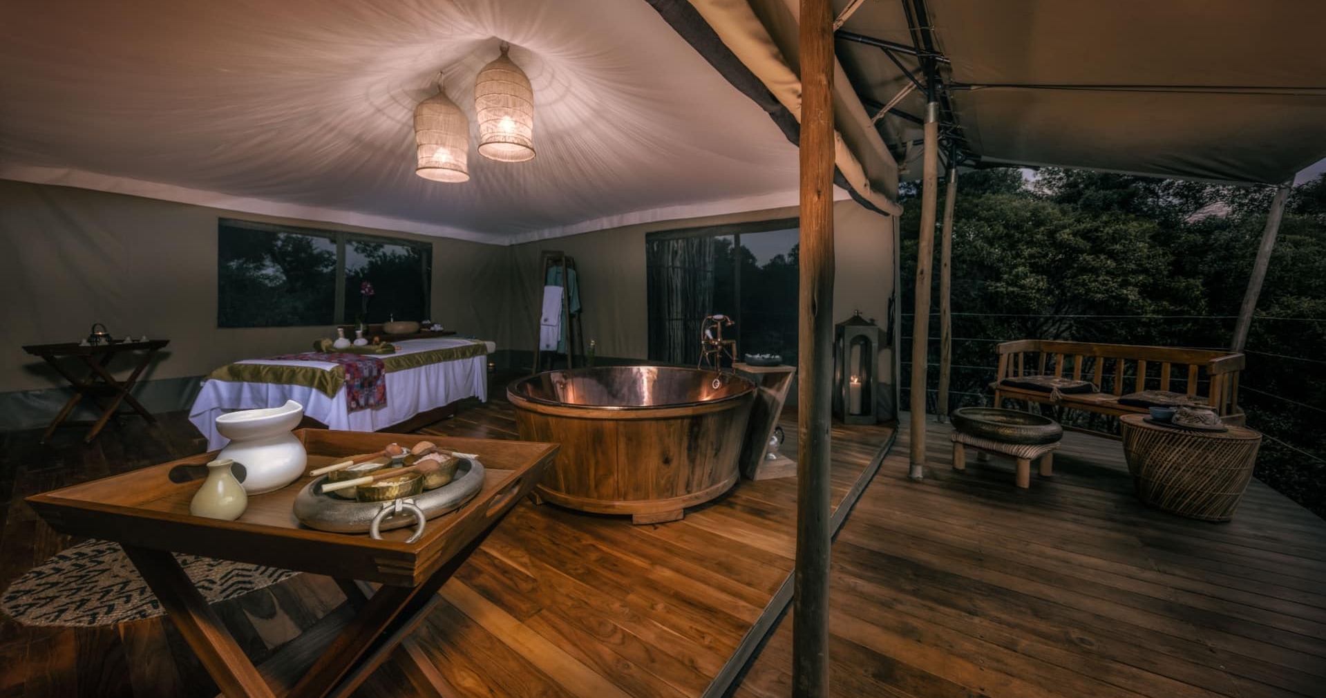 Når du ligger i sengen, kan du trykke på en knap for at åbne taget på teltet. Det eneste, der da skiller dig fra den store afrikanske stjernehimmel, er et usynligt myggenet. Her tilbydes en luksuriøs og naturlig oplevelse af højeste kvalitet.