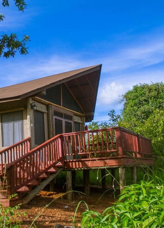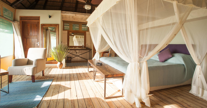 Alle teltene har en terrasse, soveværelse og eget badeværelse med bruser og toilet. Her kan du nyde naturens ro og nærheden til parkens rige dyreliv.