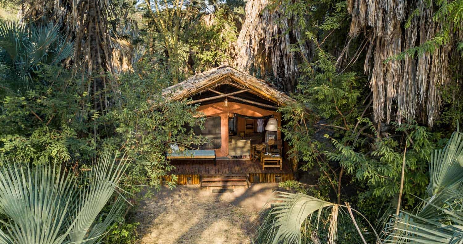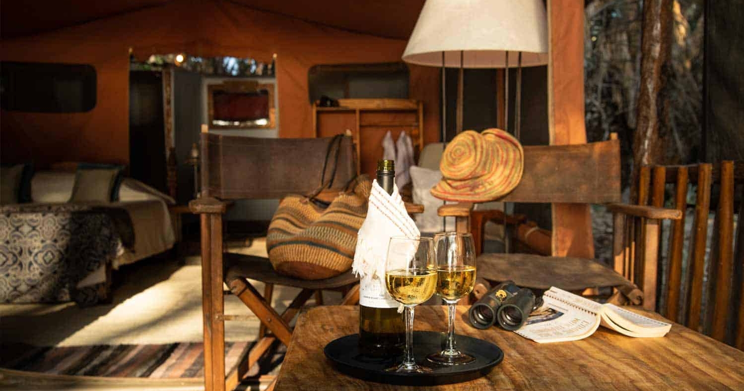 Her findes kun 12 luksuriøse telte, der tilbyder privatliv, komfort og panoramaudsigt. Hvert telt er rummeligt og elegant indrettet med moderne bekvemmeligheder og traditionelt afrikansk design, inklusive eget badeværelse, privat veranda og opholdsområder.