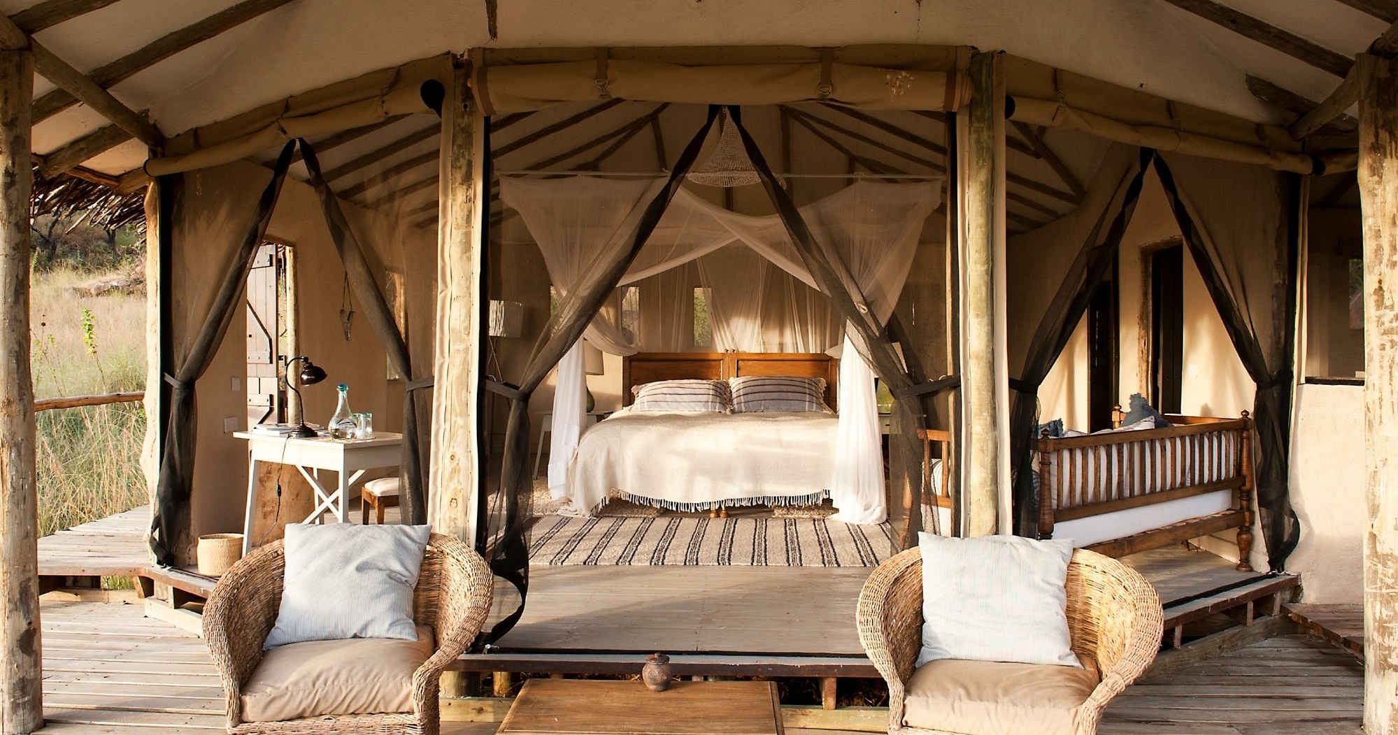 Campen kombinerer afslappet atmosfære med luksus og komfort, hvilket gør den til et perfekt udgangspunkt for en uforglemmelig safarioplevelse.