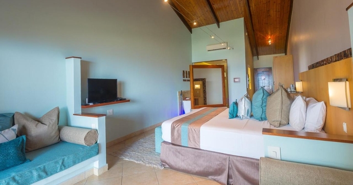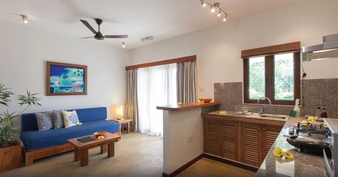 Her bor du i en selvbetjent bungalow, kun få skridt fra den fantastiske strand. Les Villas D'Ors strategiske beliggenhed langs Anse Volbert-stranden betyder, at du aldrig vil mangle ting at lave. Fra svømning i det rolige, turkise vand, snorkling og bådture til forskellige udflugter, kan du være sikker på, at du vil opleve det allerbedste af Praslin! I nærheden ligger en landsby med flere butikker, restauranter, minimarkeder, takeaways og hoteller, der giver dig et udvalg af spisesteder.