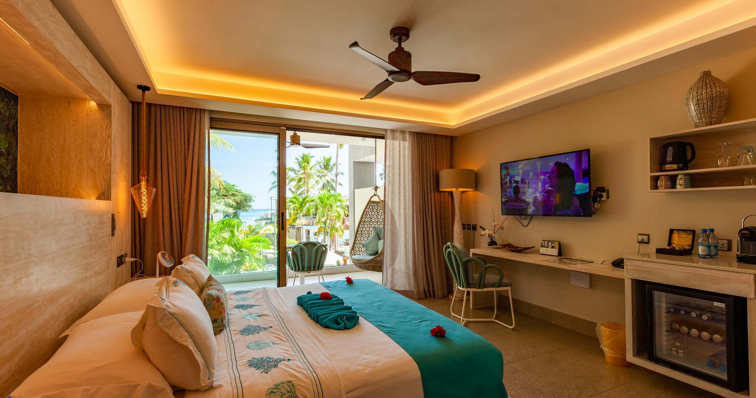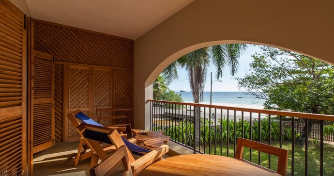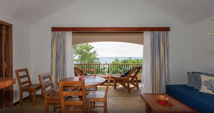 Den frodige tropeskov danner kulissen for Coco de Mer, som ligger direkte ud til havet på Praslins sydvestlige kyst. Hotellet, der er opkaldt efter den sjældne og ikoniske Coco de Mer-palme, byder på en spektakulær panoramaudsigt over nærliggende øer, skovklædte bjergsider og betagende solnedgange.