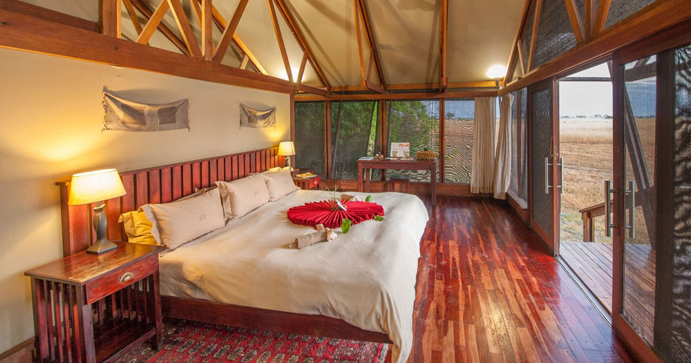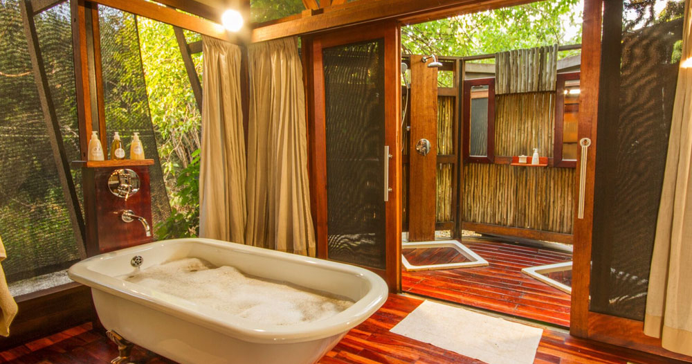 Her findes seksten safaritelte på hævede terrasser, hver med deres egen veranda langs skovkanten ved floden. Hvert telt har en veranda samt et badeværelse med udendørs bruser. Hovedbygningen har bar, pool og en stor terrasse, som giver fantastisk udsigt over Boro-floden og Chiefs Island.