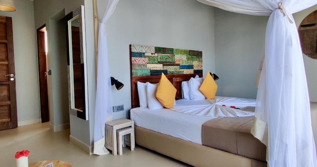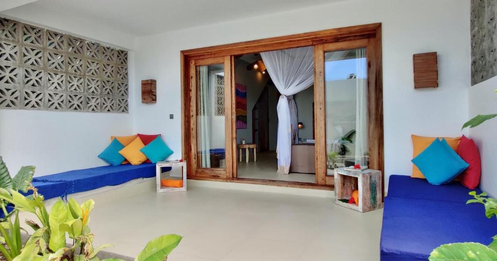 Værelserne er moderne og elegante. Alle har en udendørs veranda, som ligger direkte på den hvide strand, hvor morgenmad, frokost og middag kan serveres. Alle værelser har en flot udsigt over Det Indiske Ocean og infinity-poolen. Hvert værelse er udstyret med gratis wi-fi, safe, kingsize-senge med store myggenet og loftsventilator. Fiskerlandsbyen Jambiani er en af de mest kendte landsbyer på Zanzibar og er på mange måder uberørt på trods af turisme. Her går dagliglivet side om side med turisme på en naturlig måde, hvilket skaber muligheder for ægte oplevelser.