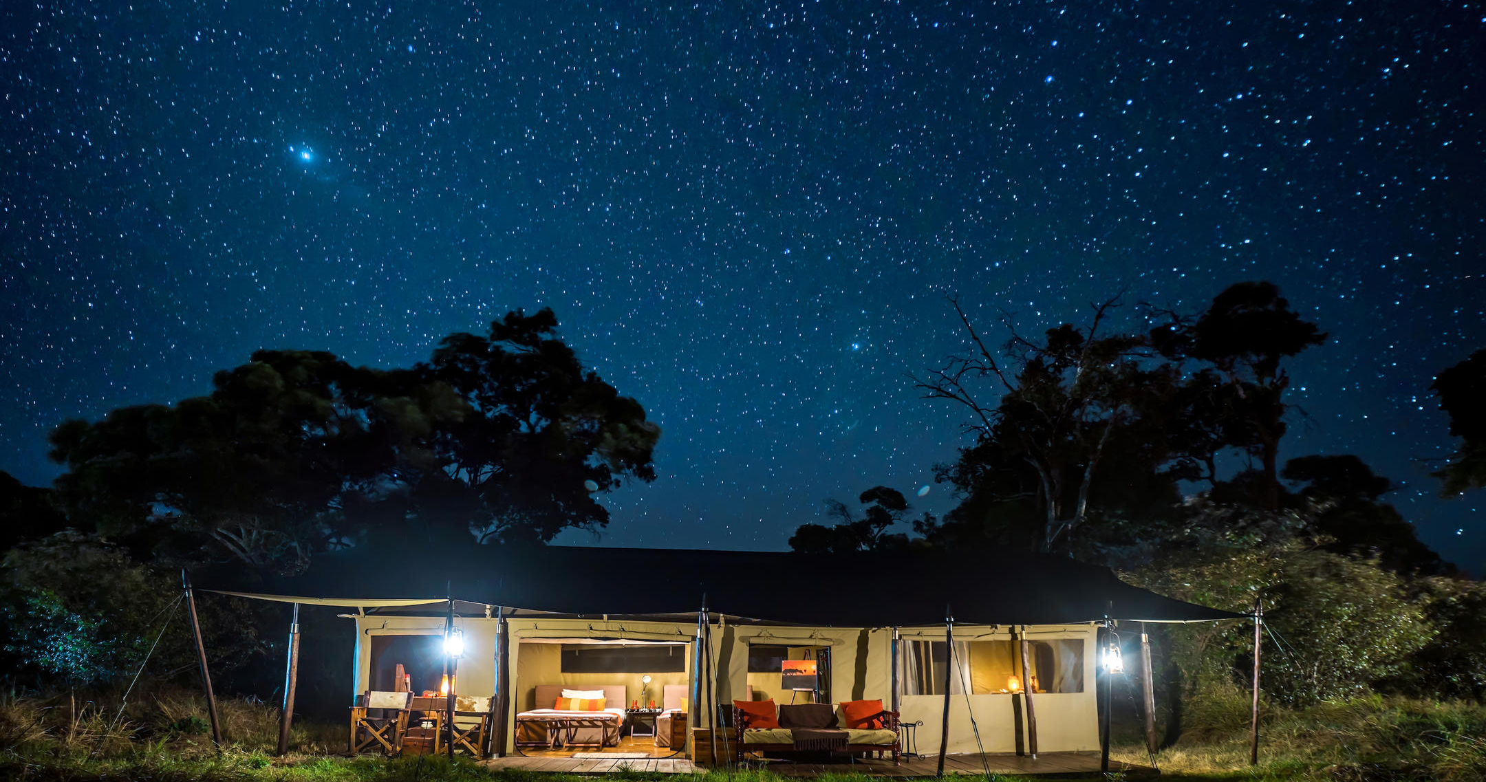 Her findes kun 12 luksuriøse telte, der tilbyder privatliv, komfort og panoramaudsigt. Hvert telt er rummeligt og elegant indrettet med moderne bekvemmeligheder og traditionelt afrikansk design, inklusive eget badeværelse, privat veranda og opholdsområder.