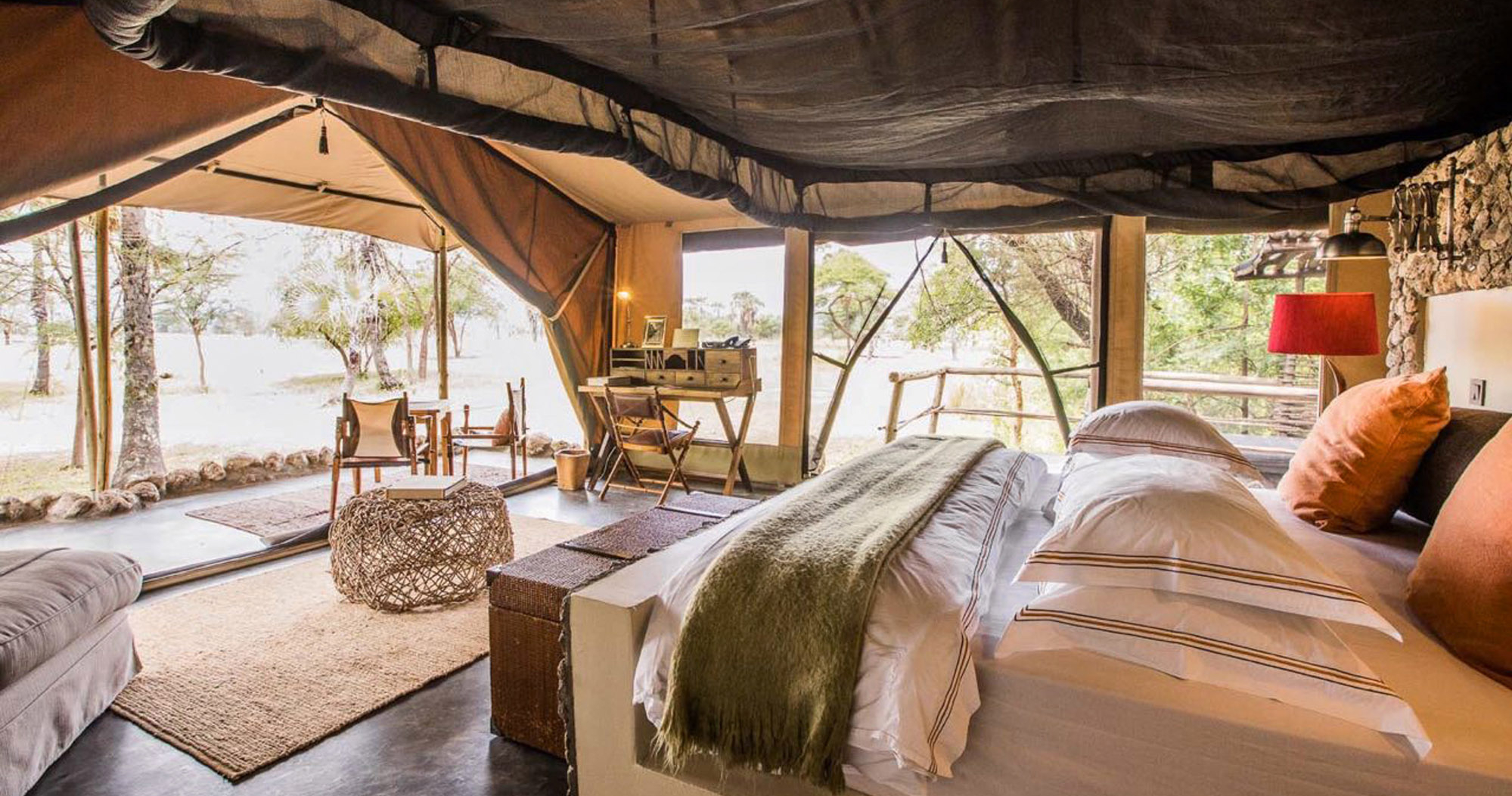 Alle teltene har en terrasse, soveværelse og eget badeværelse med bruser og toilet. Her kan du nyde naturens ro og nærheden til parkens rige dyreliv.