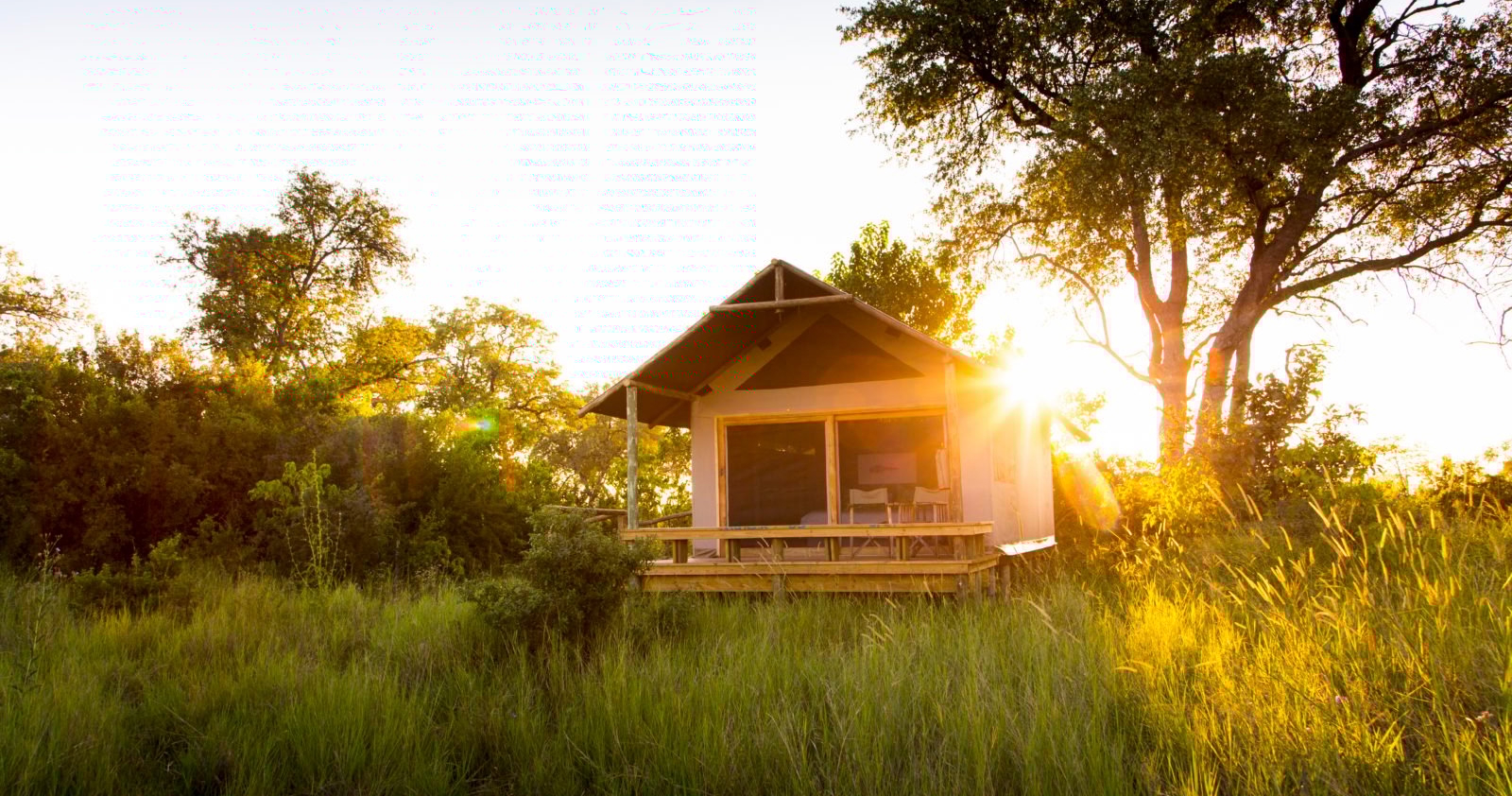 Denne eksklusive økocamp i hjertet af Okavango-deltaet tilbyder en kombination af eventyr, luksus og bæredygtighed. Teltene er udstyret med moderne bekvemmeligheder og en hævet terrasse, der tilbyder fantastiske udsigter over det omkringliggende landskab.