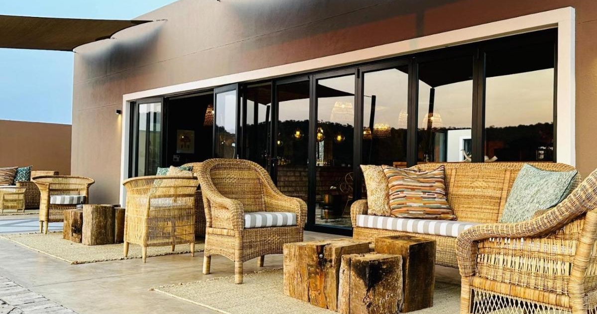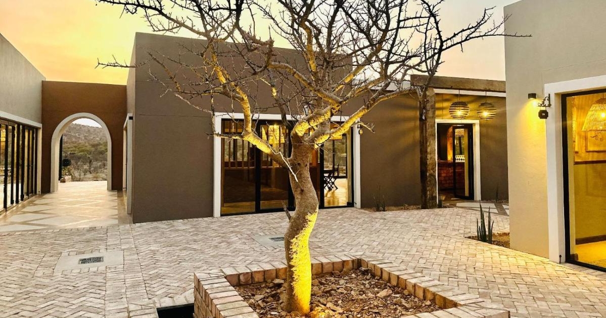 Akkurat som et gammelt afrikansk kongerige, er Damara Mopane Lodge konstrueret i en halvcirkel af sammenkoblede stier, der fører til en luksuriøs swimmingpool i midten. Hver hytte har sin egen lille have med grøntsager. Lysegule solsikker titter frem mellem grøn spinat, rødbeder og excentriske fugleskræmsler, som skaber en fortryllende lodgemiljø. Labyrinten af stier fører til et stort og lyst center. Frisk grøn vegetation lyser op interiøret, akkurat som de hjerteformede mopaneblade er rundt omkring på lodgen.