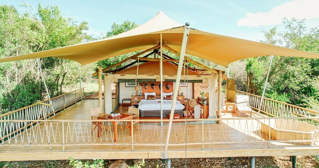 Overnatningsstedet består af teltsuiter, dekoreret med antikviteter og lokalt håndværk, hvor hver suite har komfortable senge, fuldt udstyrede badeværelser og store private terrasser, der tilbyder fantastisk udsigt.