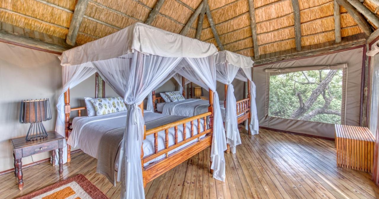 Her findes kun 12 luksuriøse telte, der tilbyder privatliv, komfort og panoramaudsigt. Hvert telt er rummeligt og elegant indrettet med moderne bekvemmeligheder og traditionelt afrikansk design, inklusive eget badeværelse, privat veranda og opholdsområder.