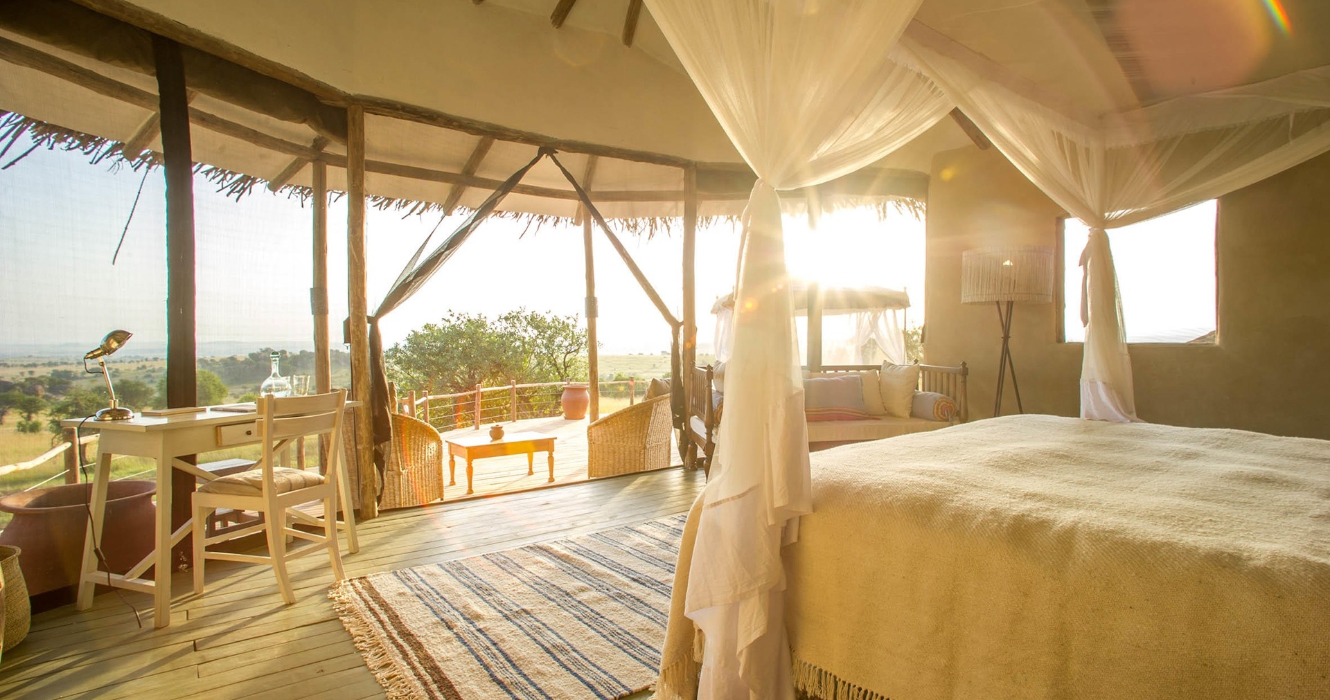De store, rummelige og elegante telte er bygget på træplatforme. Ud over komfortable senge og badeværelser er der også udendørs bruser. Alle telte har en stor og rummelig veranda, hvor du kan se ud over Serengetis uendelige sletter.