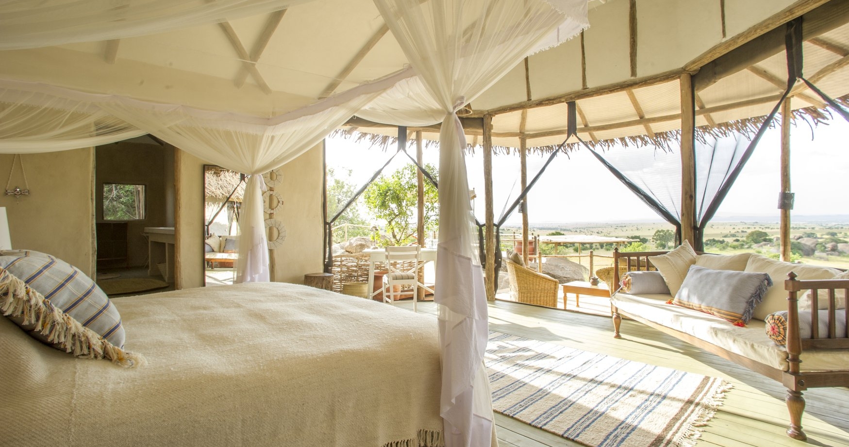 Her findes kun 12 luksuriøse telte, der tilbyder privatliv, komfort og panoramaudsigt. Hvert telt er rummeligt og elegant indrettet med moderne bekvemmeligheder og traditionelt afrikansk design, inklusive eget badeværelse, privat veranda og opholdsområder.