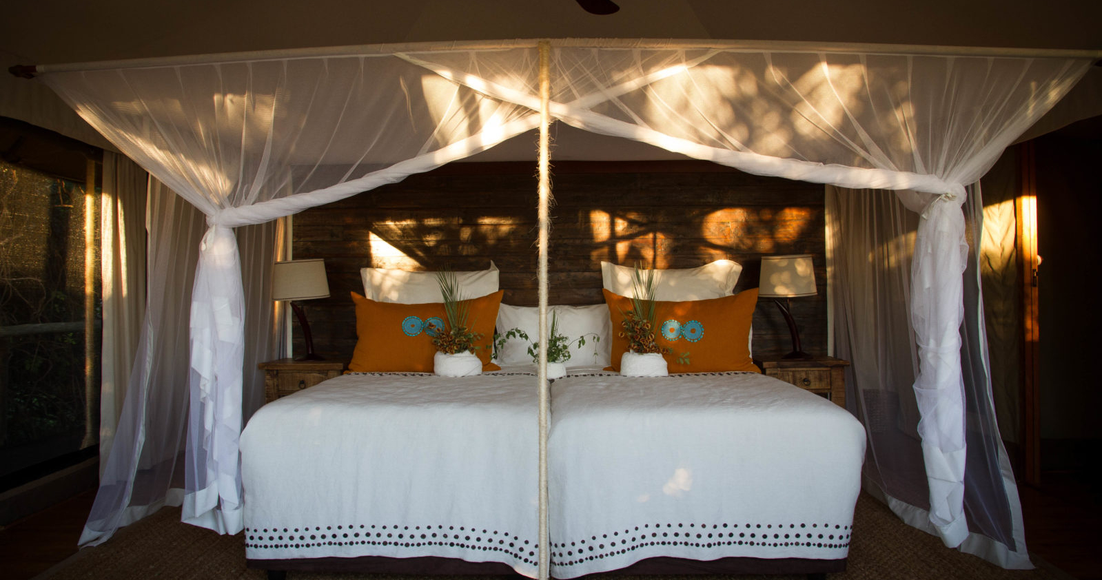 Machaba Camp består af klassiske safaritelte, der er smagfuldt indrettet for at harmonisere med miljøet omkring dem, samtidig med at de tilbyder bekvemmeligheder, der er nødvendige for en afslappende følelse. Hvert telt har komfortable senge, private badeværelser og en privat veranda, hvor du virkelig kan nyde den panoramiske udsigten.