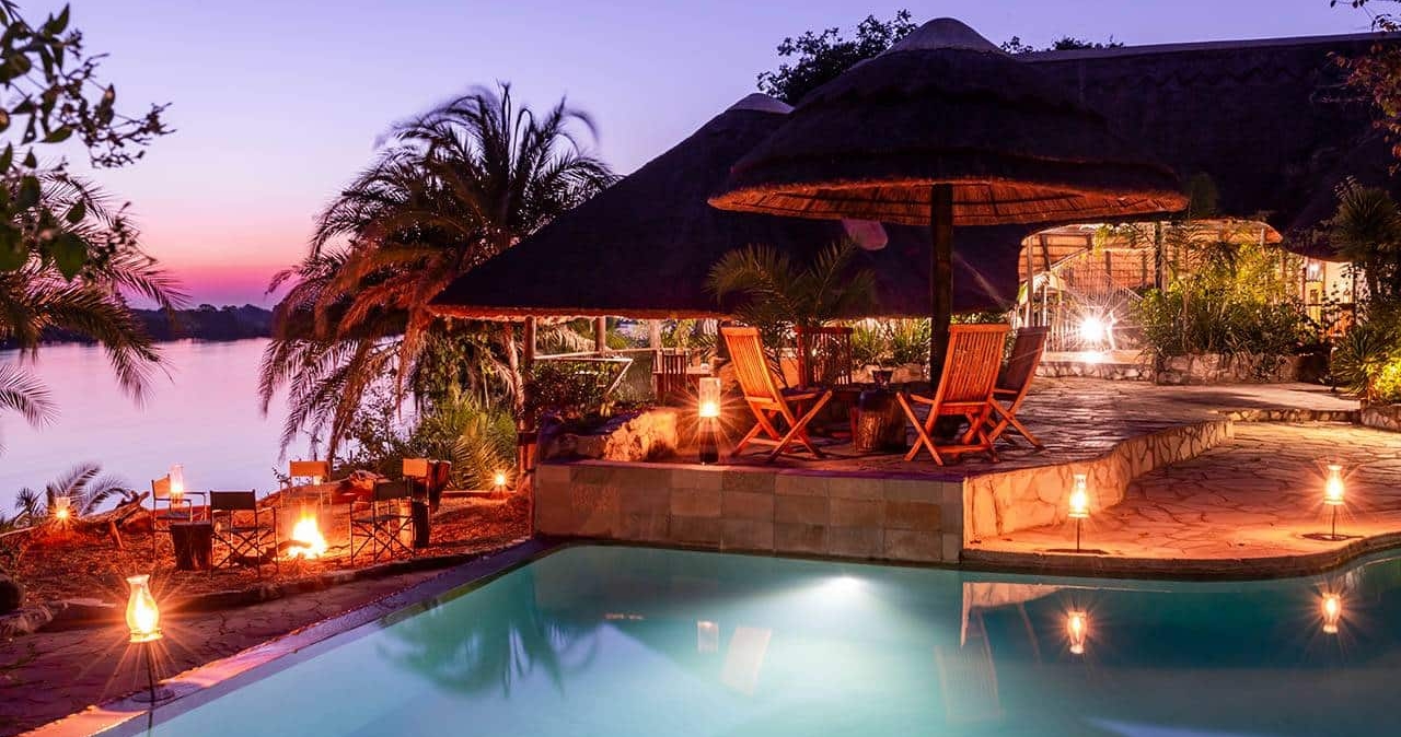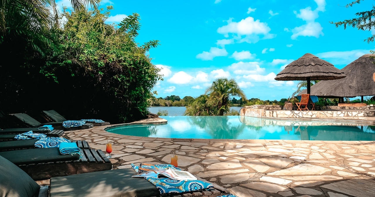 Lodgen bliver ofte omtalt som "Porten til Kafue National Park" og ligger ved bredden af den glitrende Kafue-flod. Her bor man tæt på det lokale dyreliv, herunder impalaer, bavianer, aber, elefanter, flodheste, leoparder, sjakaler og endda en lille løve; og selvfølgelig vores faste beboer, den vilde kat Mauw! Lodgen passer nahtløst ind i den omkringliggende vildmark og er designet med naturen for øje. Stråtag holder interiøret køligt, og træterrasser har udsigt over floden. Efter en game drive eller fisketur kan du køle dig ned i evighedsbassinet, mens flodhestene plasker i floden nedenfor.