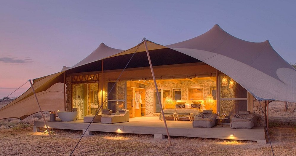 De store, rummelige og elegante telte er bygget på træplatforme. Ud over komfortable senge og badeværelser er der også udendørs bruser. Alle telte har en stor og rummelig veranda, hvor du kan se ud over Serengetis uendelige sletter.