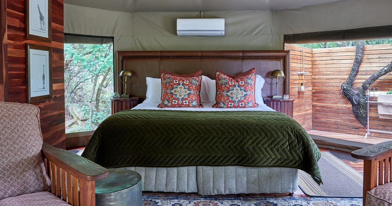 Nkomazi Private Game Reserve tilbyder overnatning i deres luksuriøse teltlejr. Hvert telt er smagfuldt indrettet med afrikanske detaljer, giver enestående komfort og har en privat veranda med en fantastisk udsigt over landskabet. Alle teltene har egne plaskebassiner og udendørs bruser.
