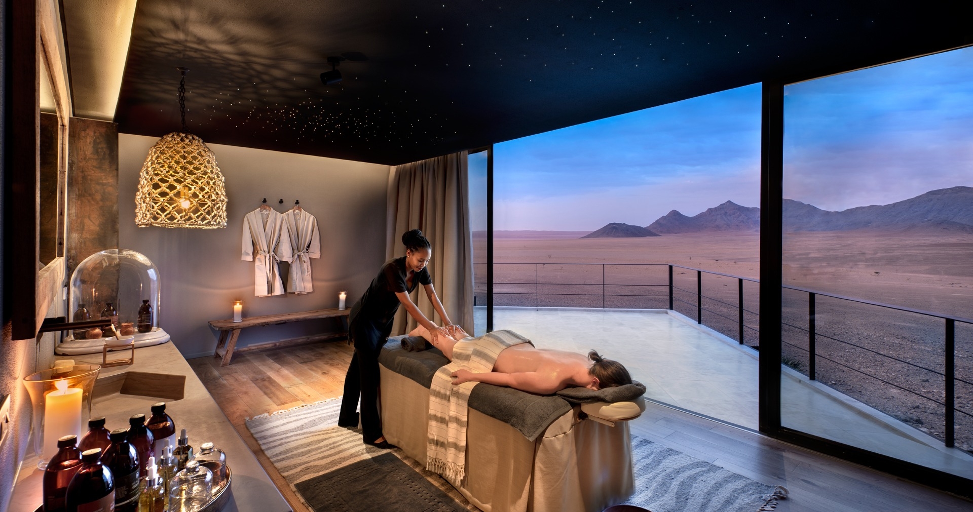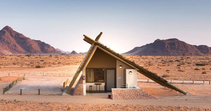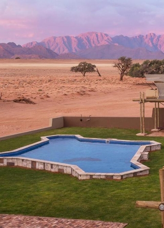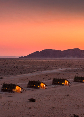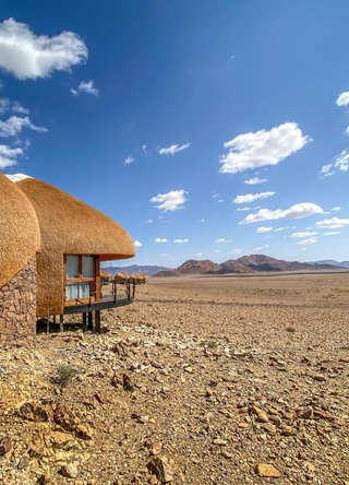 Desert Hills Lodge ligger på en lille høj i den sydvestlige ørken, nær UNESCOs verdensarvsområde Sossusvlei. Lodgen byder på enestående udsigt over områdets bjerge og ørkenlandskab og er kendt for sin unikke arkitektur, inspireret af de oprindelige nomadiske folk.