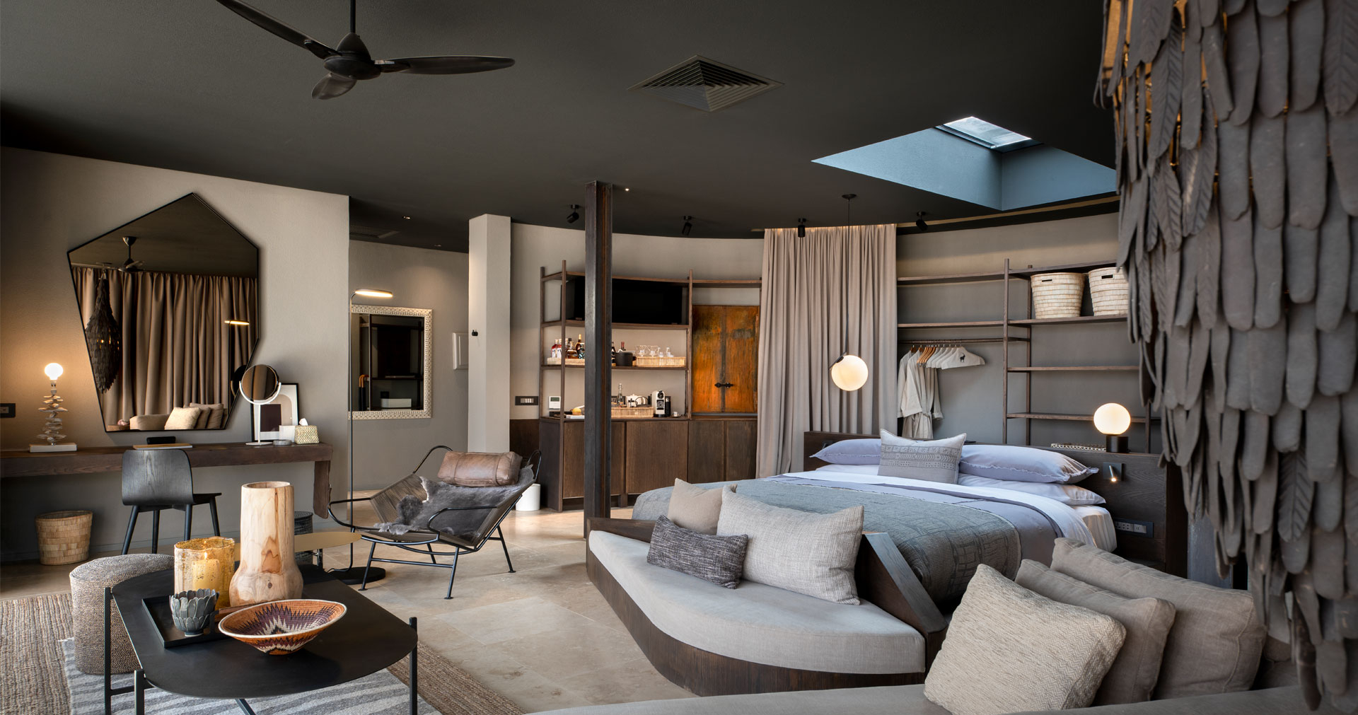Lodgen tilbyder tolv eksklusive suiter bygget i sten og glas. Hver suite har et udtrækbart tagvindue til at se stjernerne fra sengen og en privat veranda med pool. Her kan du nyde en stjerneklar himmel, enestående udsigt og en overvældende ro i et af Afrikas mest fascinerende landskaber.