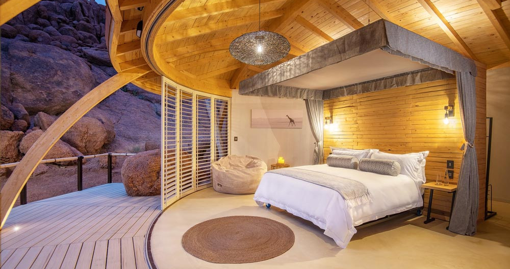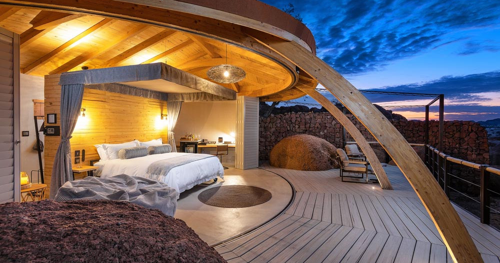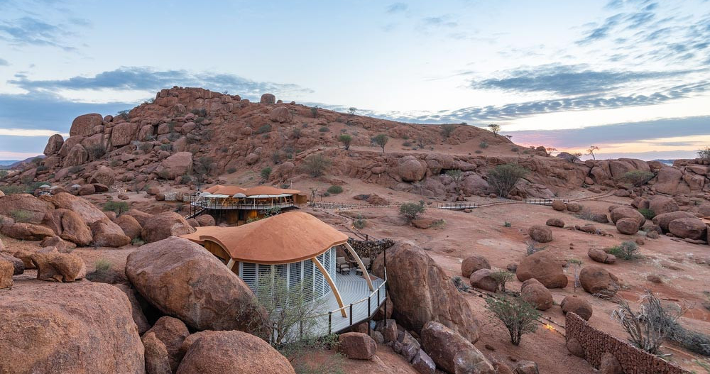 Mowani Mountain Camp, som ligger i hjertet af Damaraland, er en luksuriøs indkvartering omgivet af storslåede landskaber og farverige bjerge. Campen er designet til at smelte sammen med omgivelserne og fremhæver områdets gamle landformer og geologiske formationer.