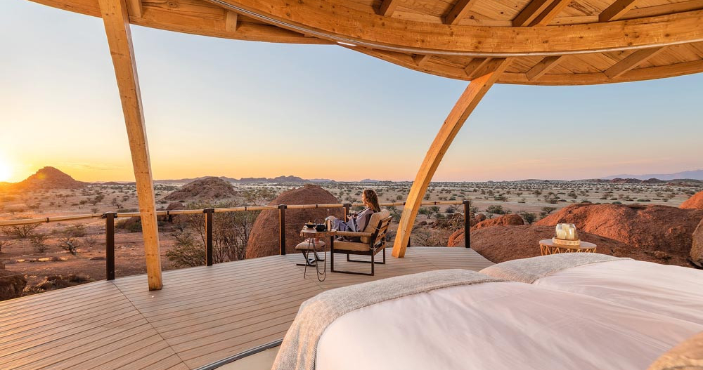 Denne luksuriøse retreatcamp i Doro, kun 20 minutter fra Twyfelfontein, har seks eksklusive suiter med en pragtfuld udsigt over Namibias højeste bjerg, Brandberg. Campen lægger stor vægt på bæredygtighed og drives udelukkende af solenergi. Herfra udgår aktiviteter som næsehornssafari og vandresafarier – en helt særlig camp for dig, der vil kombinere spændende safarioplevelser med luksus.