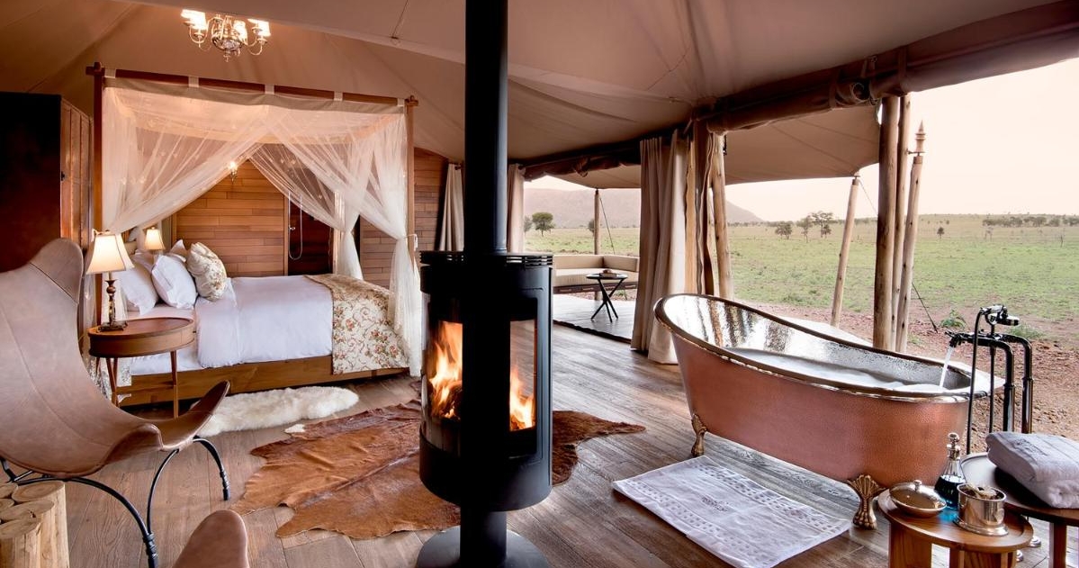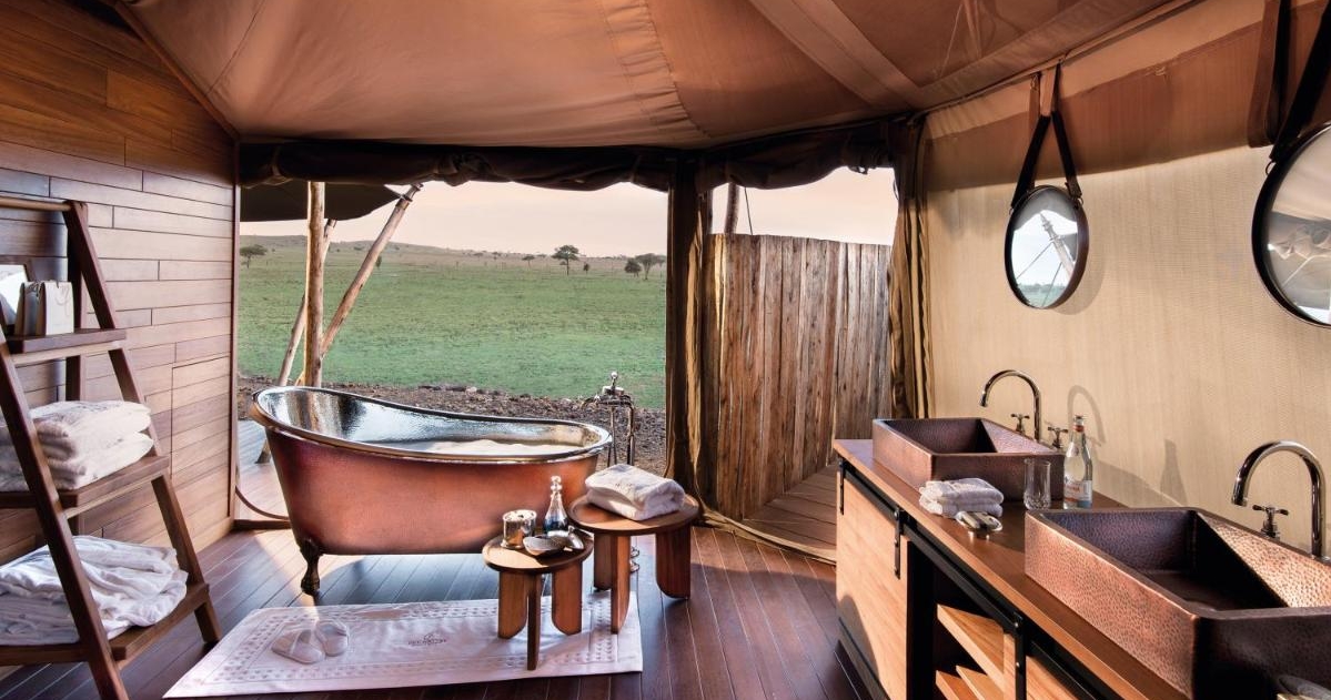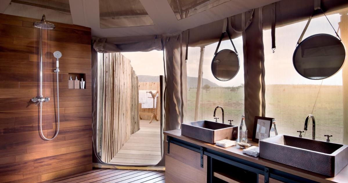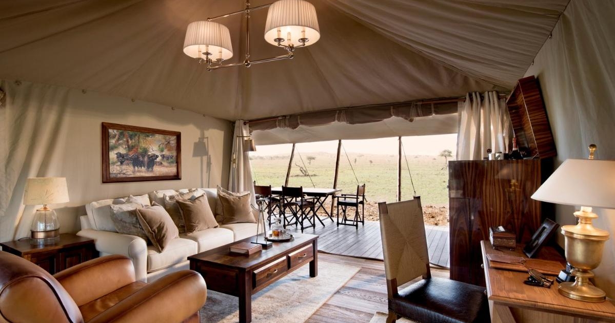 De store, rummelige og elegante telte er bygget på træplatforme. Ud over komfortable senge og badeværelser er der også udendørs bruser. Alle telte har en stor og rummelig veranda, hvor du kan se ud over Serengetis uendelige sletter.