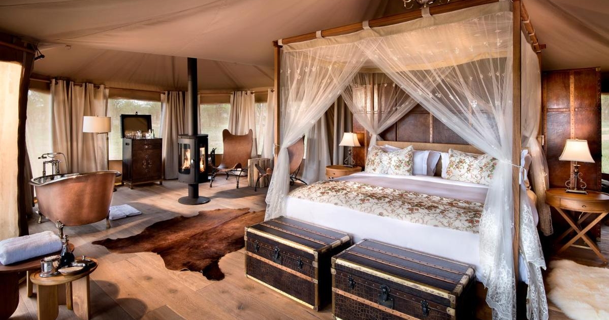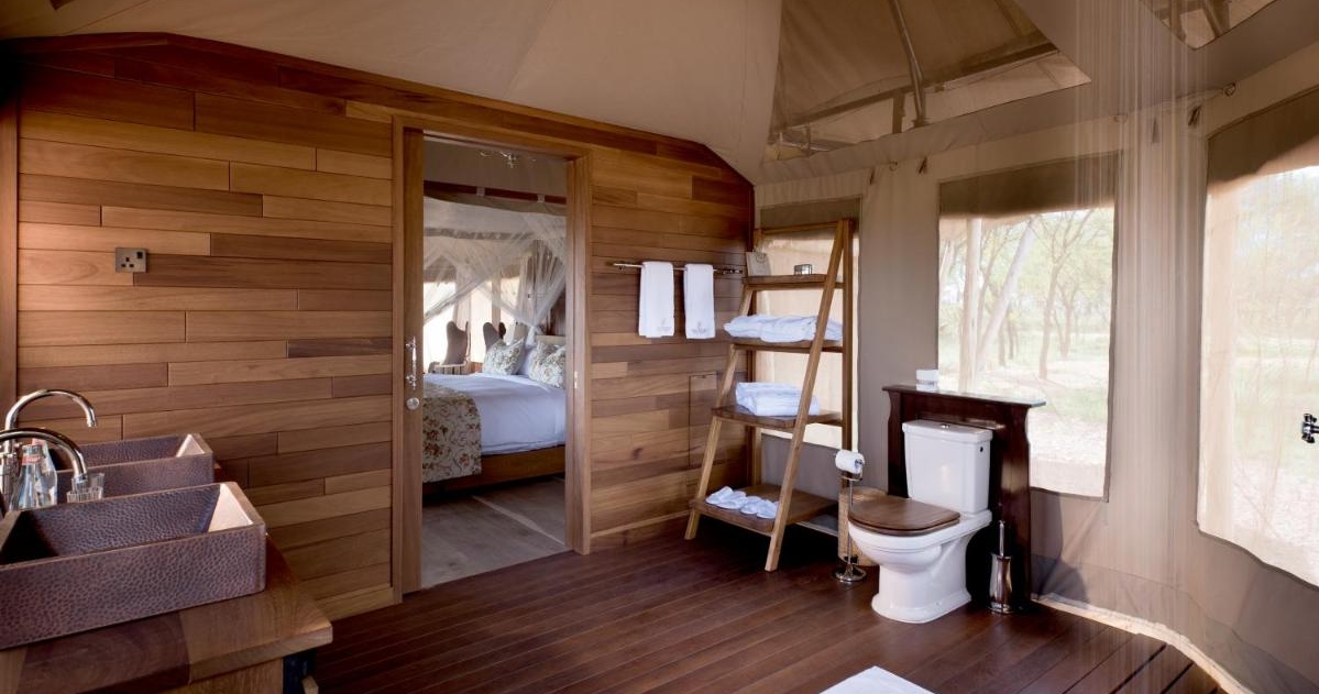 Her findes kun 12 luksuriøse telte, der tilbyder privatliv, komfort og panoramaudsigt. Hvert telt er rummeligt og elegant indrettet med moderne bekvemmeligheder og traditionelt afrikansk design, inklusive eget badeværelse, privat veranda og opholdsområder.