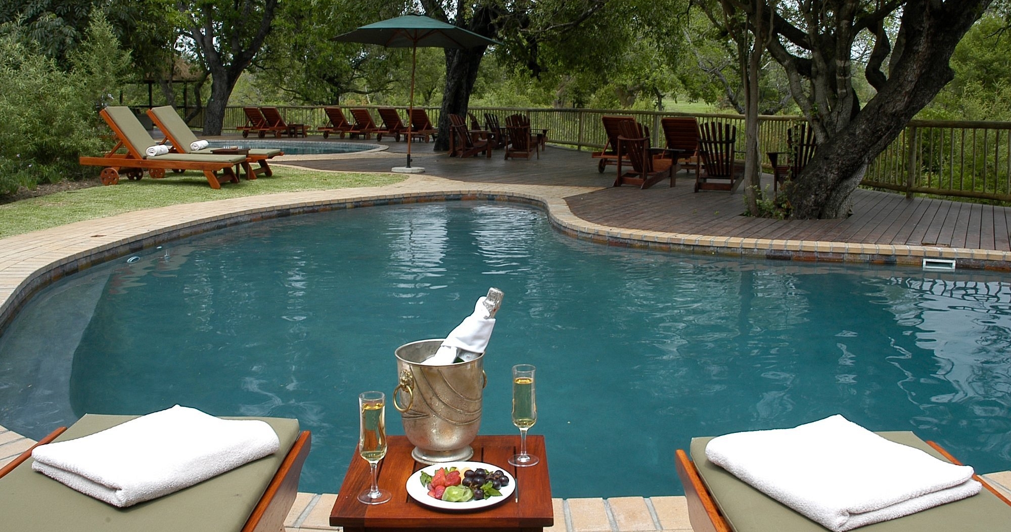 Fra suiterens terrasse kan du se ud over N'waswitsontso-elven og de store sletter. Lodgen har faciliteter som swimmingpool og spa-behandlinger. Et godt valg for familier, da børn over otte år er velkomne.