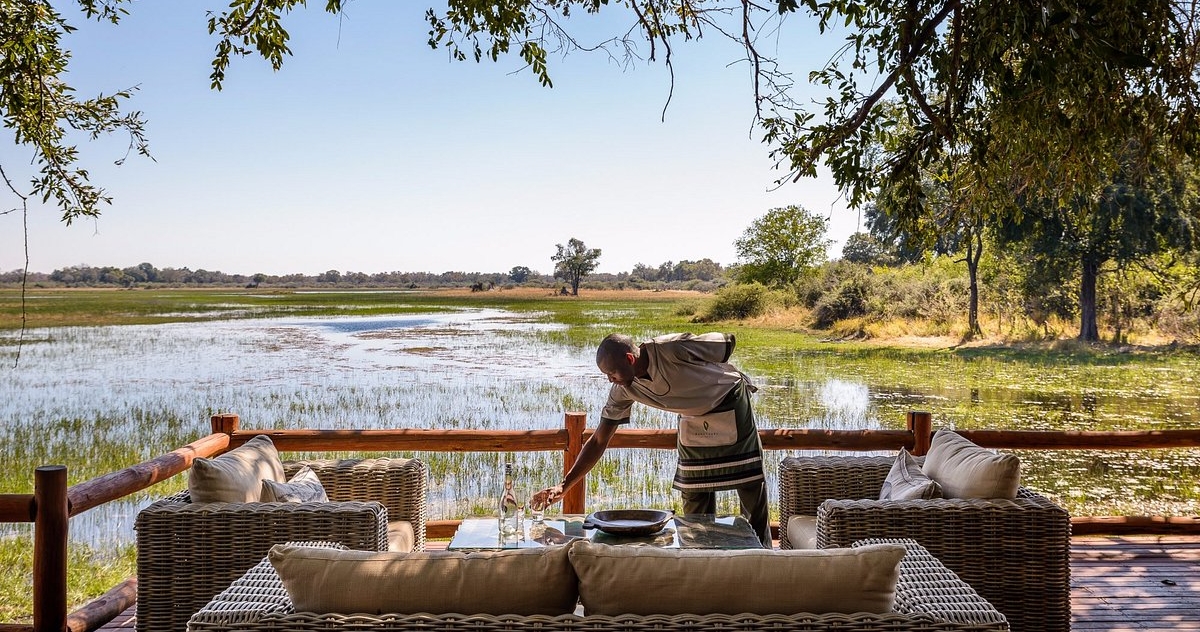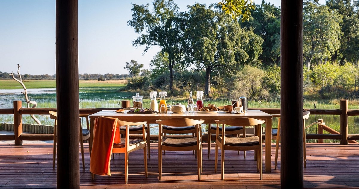 Moremi Crossing, som ligger på en palmekledd øy med udsigt over Chiefs Island i Okavango Delta, tilbyder en safarioplevelse med fokus på vand- og vandreture.