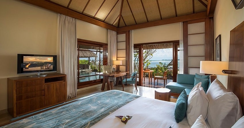 Overnatningsstedet består af luksuriøse villaer med charmerende stråtage, nogle med privat pool og andre med spektakulær udsigt over havet eller haven. Her kan du læne dig tilbage og nyde ferien i en solseng eller leve dine eventyrlige sider ud gennem snorkling, windsurfing eller kajaksejlads.