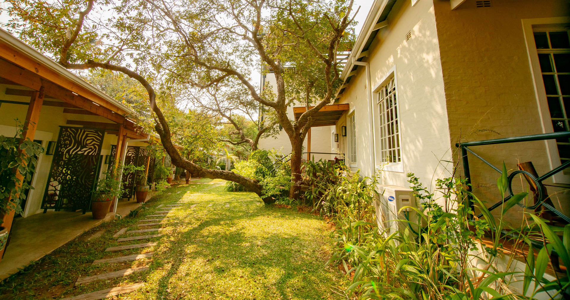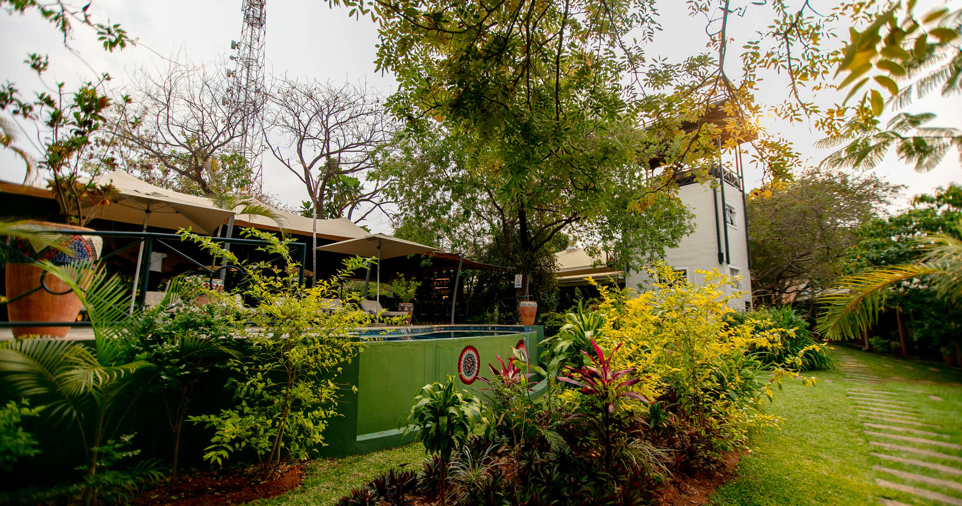 Lodgen ligger kun 2 kilometer fra Victoriafald, hvilket gør den til et ideelt udgangspunkt for at udforske området. Værelserne er omgivet af frodige haver og majestætiske teaktræer, med lodgens infinity-pool som et centralt samlingspunkt.