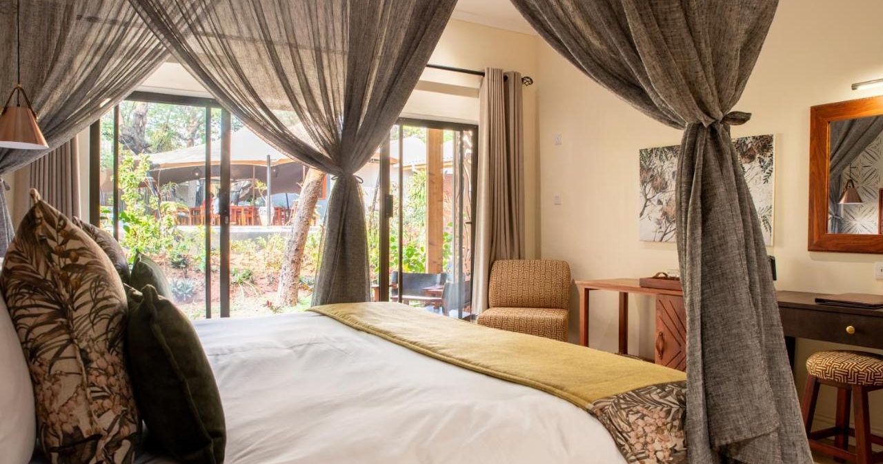 Lodgen ligger kun 2 kilometer fra Victoriafald, hvilket gør den til et ideelt udgangspunkt for at udforske området. Værelserne er omgivet af frodige haver og majestætiske teaktræer, med lodgens infinity-pool som et centralt samlingspunkt.