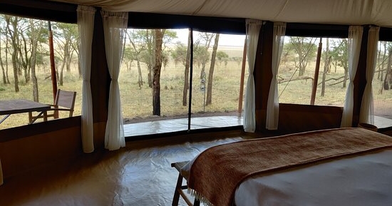 De store, rummelige og elegante telte er bygget på træplatforme. Ud over komfortable senge og badeværelser er der også udendørs bruser. Alle telte har en stor og rummelig veranda, hvor du kan se ud over Serengetis uendelige sletter.