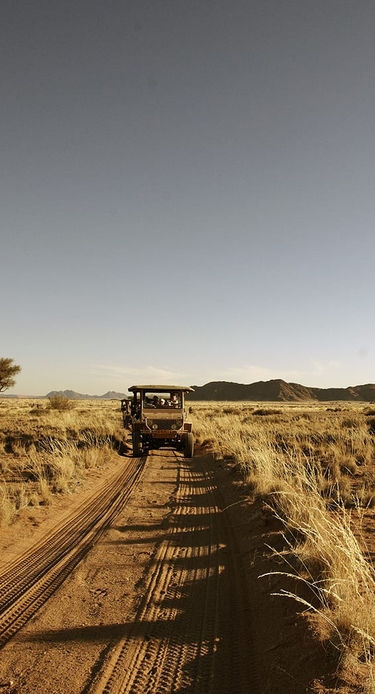 Frokosten serveres i spisevognene, og derefter bliver I kørt til flyet, som skal tage jer til Sossusvlei, hvor I overnatter på den fantastiske Sossusvlei Lodge. Efter indtjekning kan I nyde en lækker frokost i restauranten. Om eftermiddagen tager I afsted på en kort køretur ud i ørkenen med efterfølgende bush-middag efter solnedgangen.
