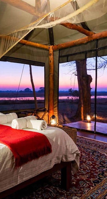 Eventyret begynder tidligt om morgenen. Efter en kop kaffe eller te tager I med safaribilen på en spændende safari i solopgangen. I Kafue kan I opleve elefanter, giraffer, løver, bøfler, leoparder og den usædvanlige sabelantilope, som mange mener er Afrikas smukkeste antilope. I ankommer til jeres nye lejr ved frokosttid, og om eftermiddagen tager I på en ny spændende safari i parken. Middagen serveres i lodgen, og aftenen afsluttes omkring det gnistrende bål under Afrikas stjernespækkede nattehimmel.